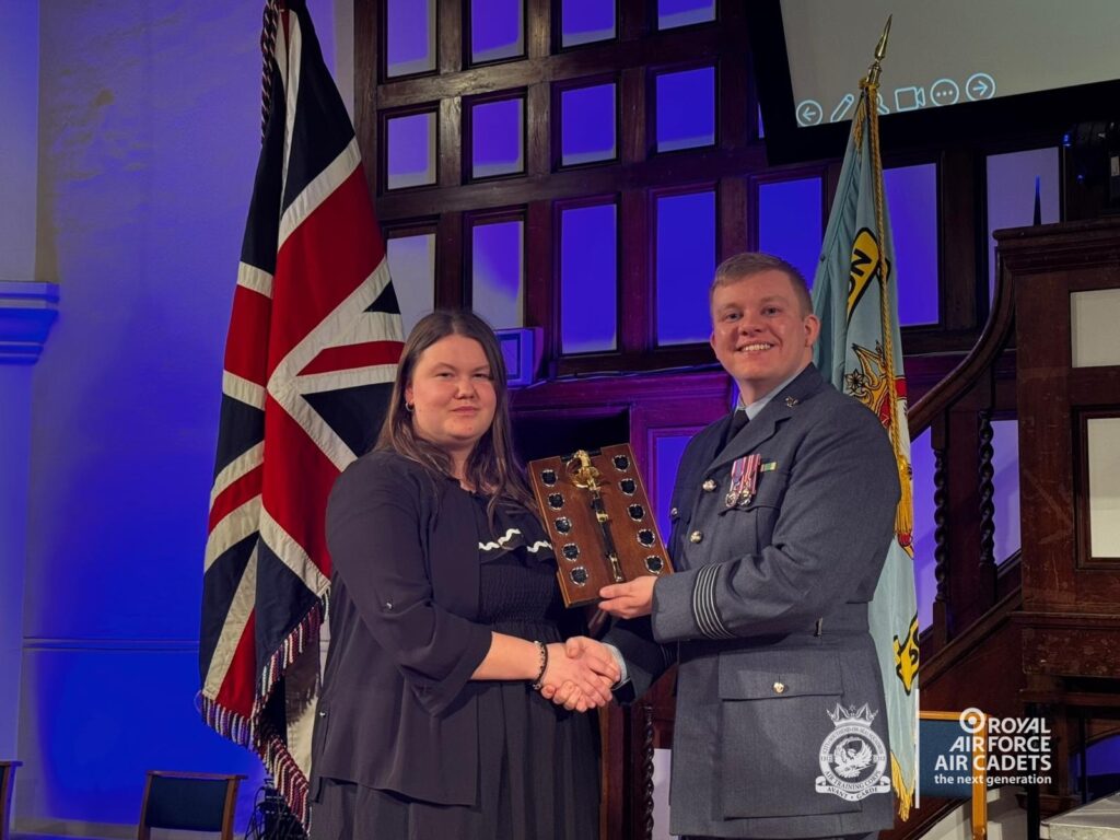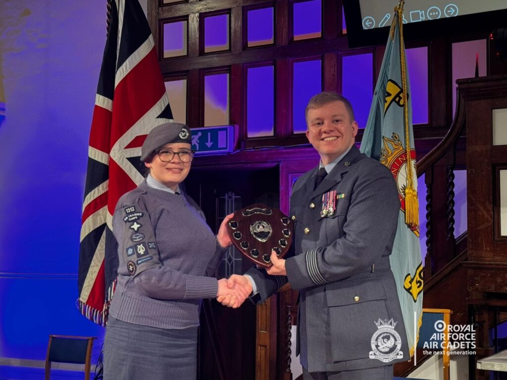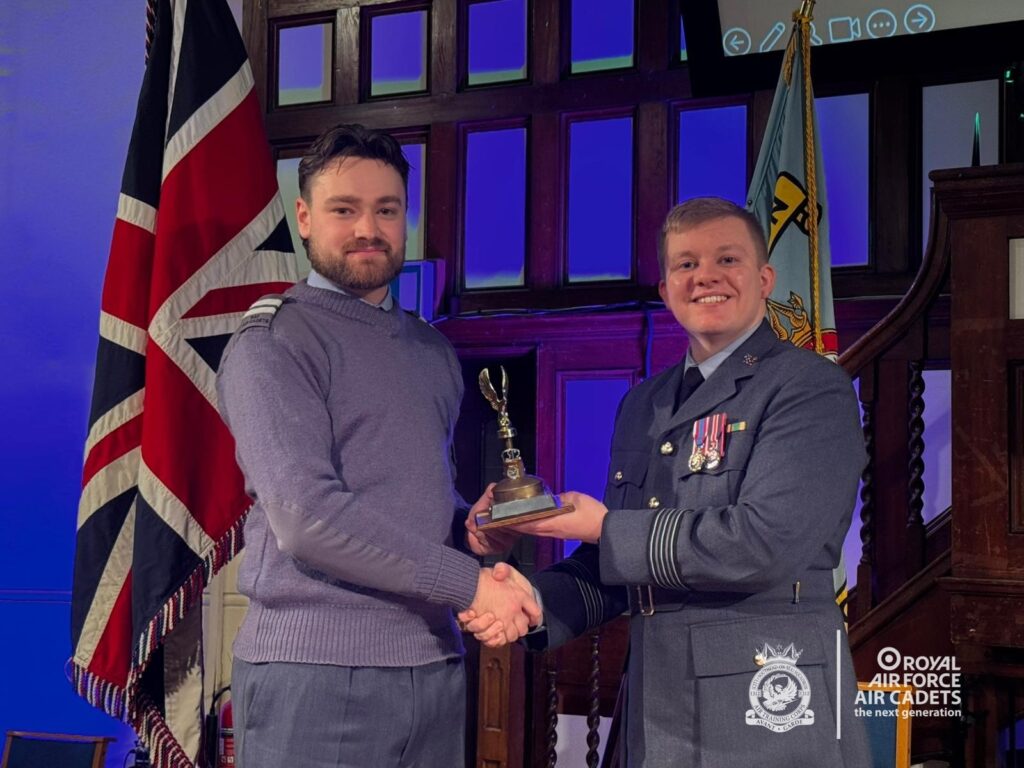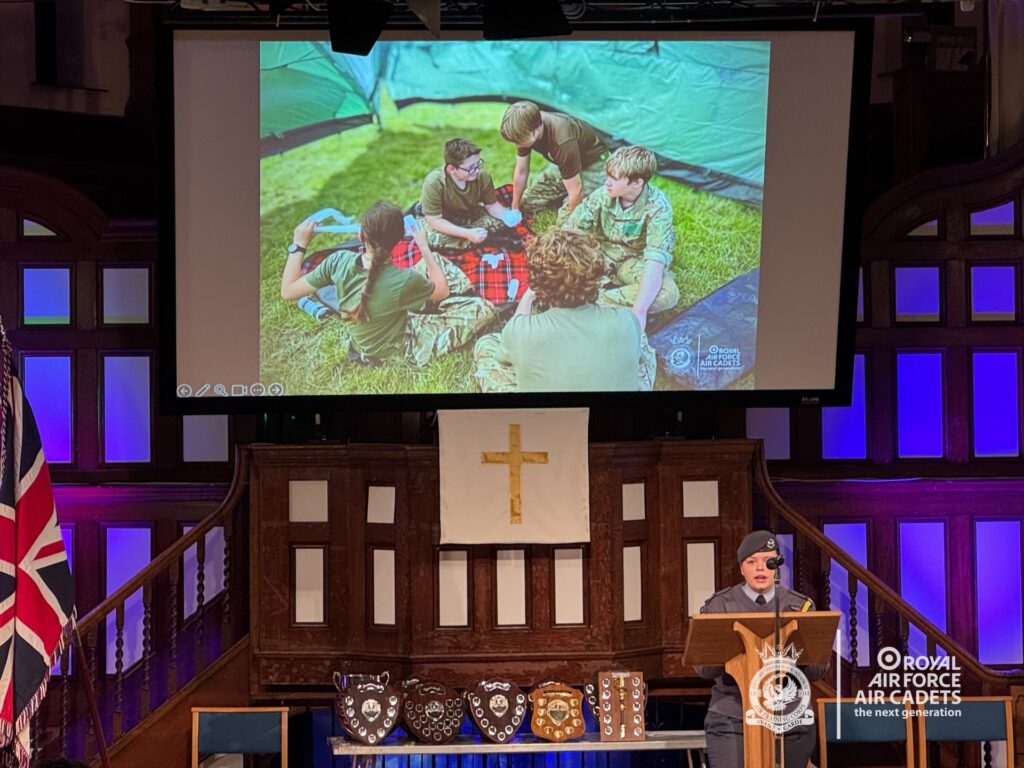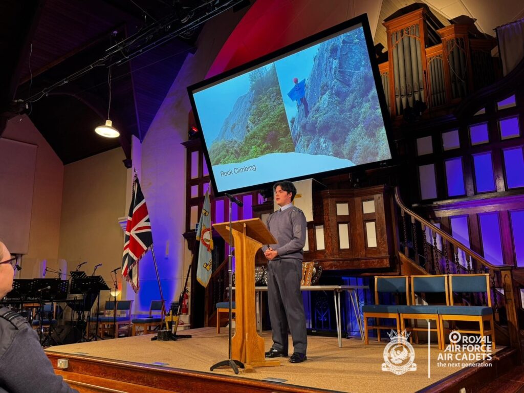 The evening also featured cadet presentations from Cdt Kent, Cpl Raffay, Cdt Adedoyin and FS Atkins (now CI Atkins), who spoke confidently about their experiences on camps, courses and throughout their RAFAC journey, highlighting the opportunities and personal development the organisation offers.